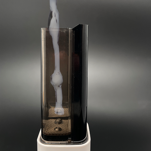 Den Deckel vorsichtig nach oben schieben und schon beginnt der Sprühvorgang.
