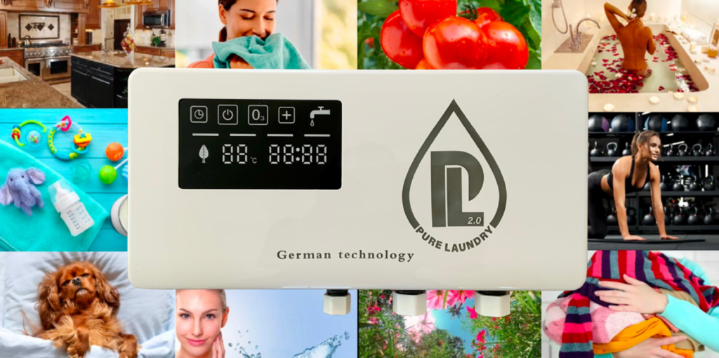 Der Pure Laundry produziert ozonangereichertes Wasser, um Wäsche, Geschirr und Haushaltsoberflächen gründlich, sicher und chemiefrei zu reinigen.