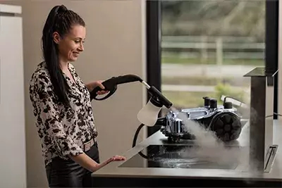Von Armaturen über das Ceranfeld bis hin zum Backofen mit Fettrückständen und Rost, der thermoAS sorgt für eine gründliche Reinigung und glänzende Oberflächen. Auch Fliesen und Schränke können mühelos entstaubt werden. Selbst bei Verstopfungen im Abfluss ist der thermoAS dank seiner starken Saugkraft eine zuverlässige Hilfe. Doch nicht nur beim Putzen, sondern auch beim Pflegen von Glasflächen ist der thermoAS ein wahrer Alleskönner. Mit seinen zahlreichen Aufsätzen und Funktionen ist er ein wahrer Gewinn für jede Küche.